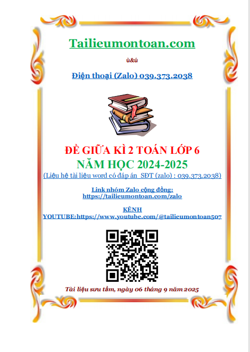 Đề giữa kì 2 môn toán lớp 6 năm học 2024-2025