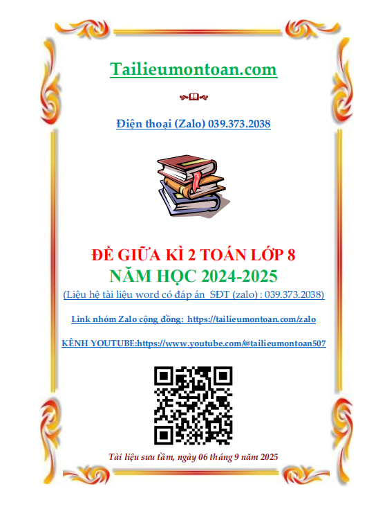 Đề giữa kì 2 toán lớp 8 năm học 2024-2025