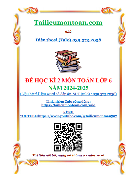 Đề học kì 2 toán lớp 6 năm học 2024-2025