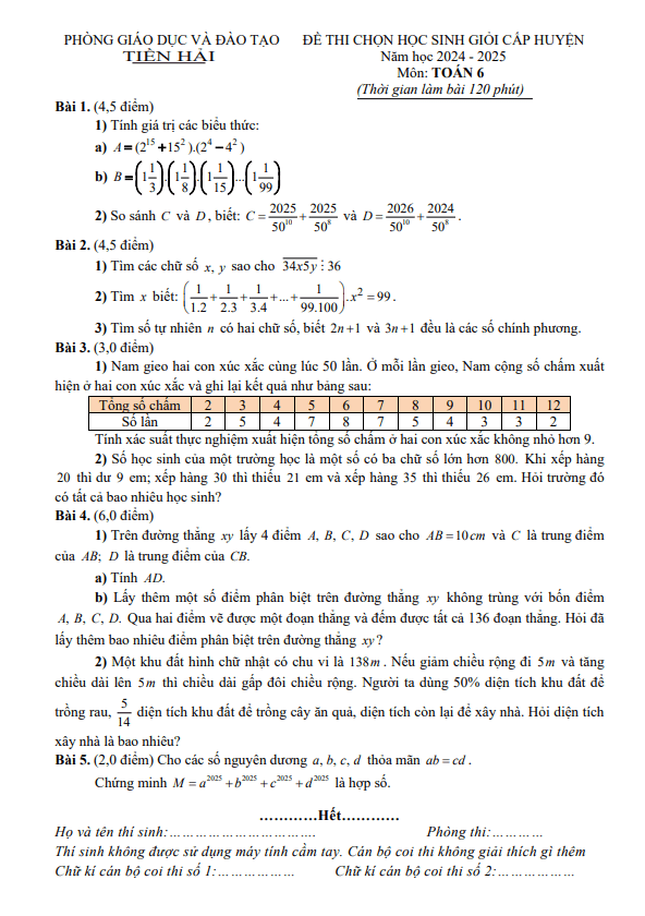 Đề học sinh giỏi toán 6 Tiền Hải 2024-2025