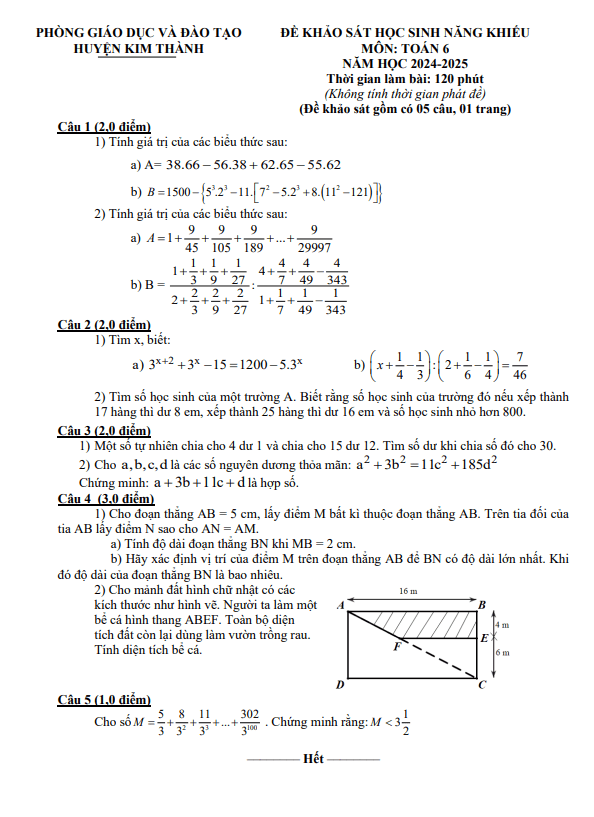 Đề học sinh giỏi toán lớp 6 Kim Thành Hải D...