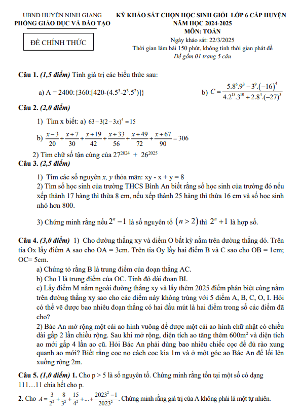 Đề học sinh giỏi toán lớp 6 Ninh Giang Hải D...