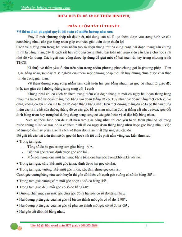 Chuyên đề vẽ thêm hình phụ toán lớp 7