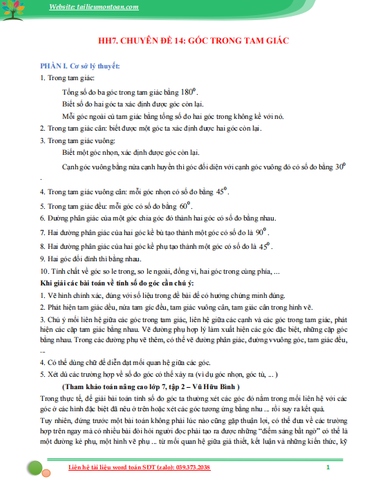 Toán 7 cơ bản (gồm nhiều chuyên đề)