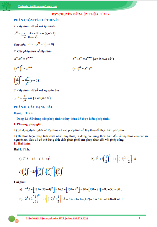 Chủ đề 1: Thực hiện phép tính, tìm ẩn chưa biết, giá trị tuyệt đối