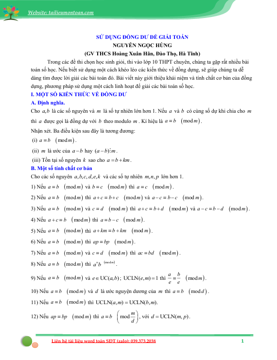 Chủ đề 3: Chia hết, số tận cùng, đồng dư thức