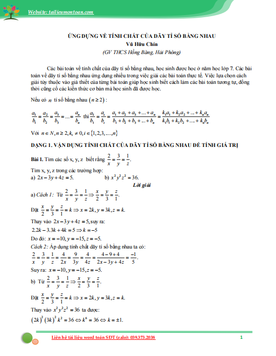Ứng dụng của tính chất dãy tỉ số bằng nhau