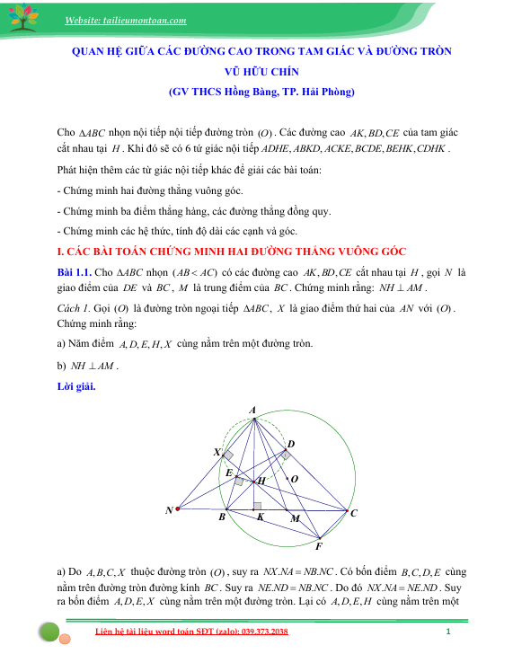 QUAN HỆ GIỮA CÁC ĐƯỜNG CAO TRONG TAM GIÁC VÀ ...