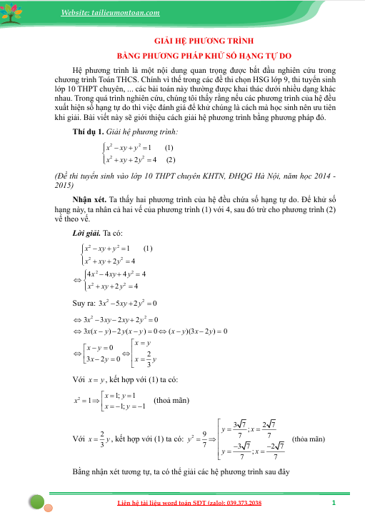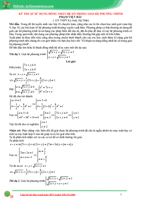 Kĩ thuật đồng nhất hệ số để giải hệ ph...