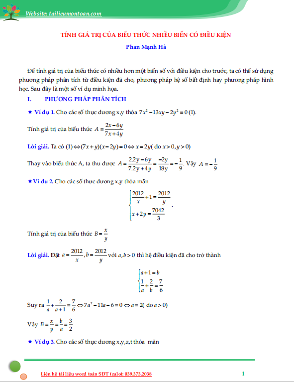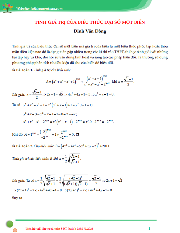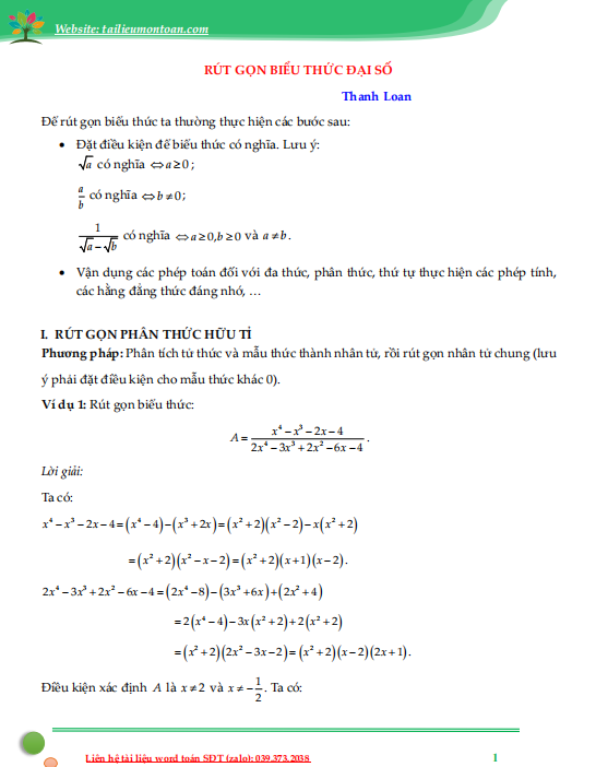 Chủ đề 1: Biểu thức đại số, rút gọn biểu thức