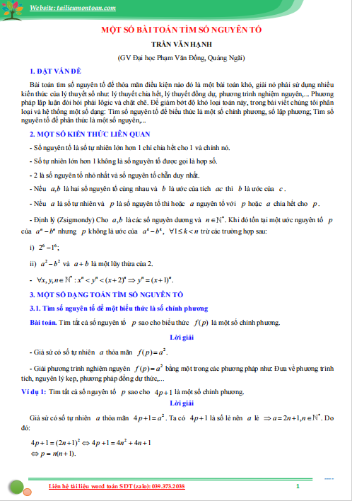 Chuyên đề số nguyên tố bồi dưỡng học sinh...