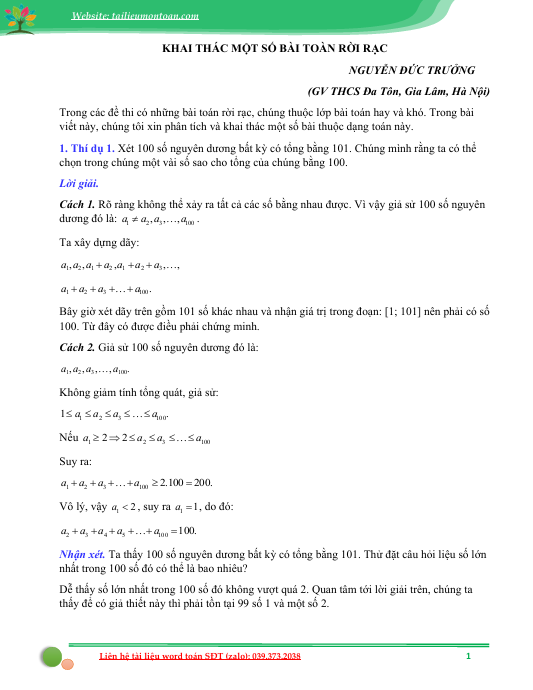Một số dạng toán rời rạc luyện thi vào lớ...