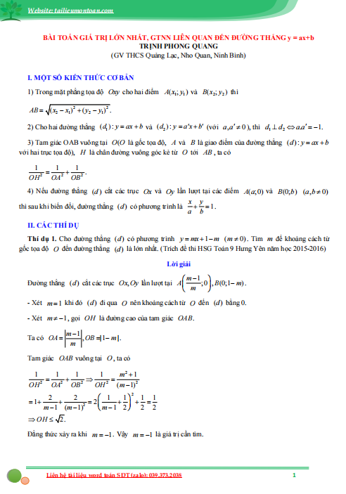 Bài toán tìm giá trị lớn nhất, nhỏ nhất li...