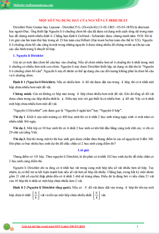 Một số ứng dụng hay của nguyên lý dirichlet