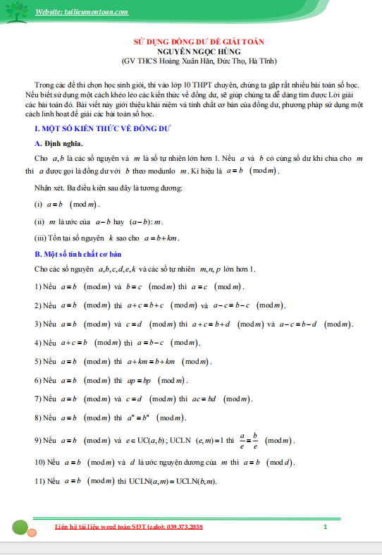 Sử dụng đồng dư thức để giải toán