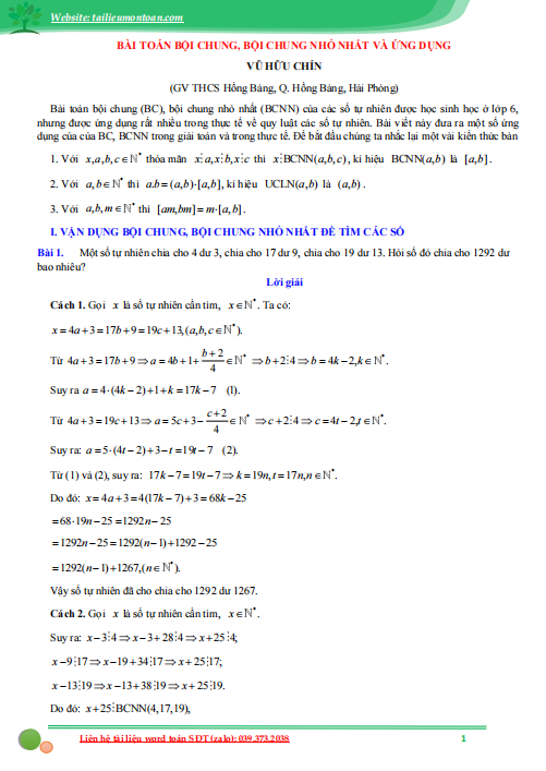 Bội chung, bội chung nhỏ nhất và ứng dụng
