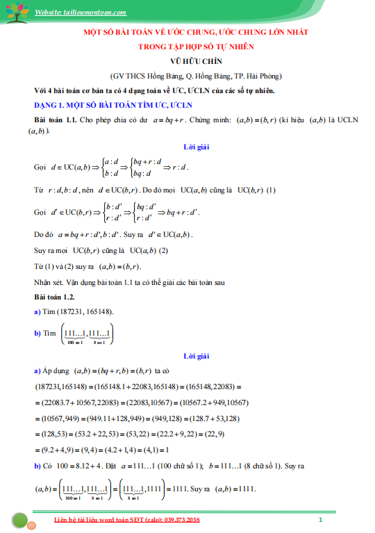 Ước chung, ước chung lớn nhất và ứng dụng ...